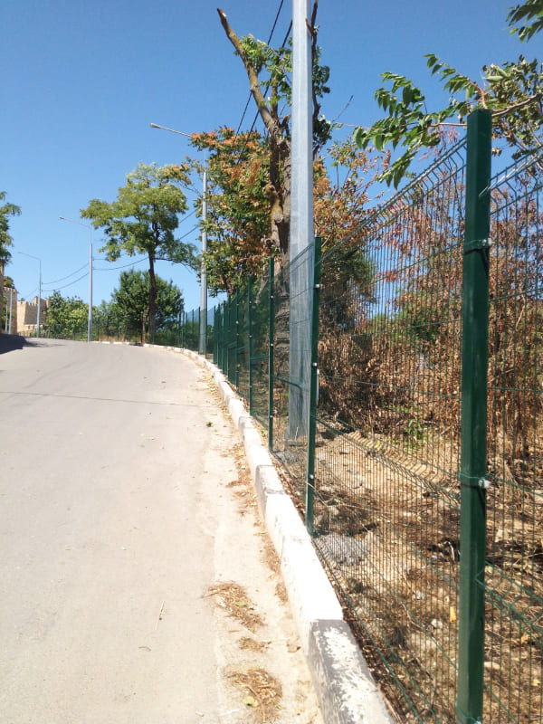 Системы оград из 3д сетки производятся из оцинкованного сырья, что обеспечивает надежную защиту от коррозии. Слой цинка покрывается технологичным нанопокрытием, позволяющим увеличить адгезию слоев краски и цинка. Завершающим этапом наносится слой полимерного покрытия. Стандартный цвет полиэфирной краски – зеленый RAL 6005, но по желанию заказчика можно выбрать любой другой по каталогу RAL.